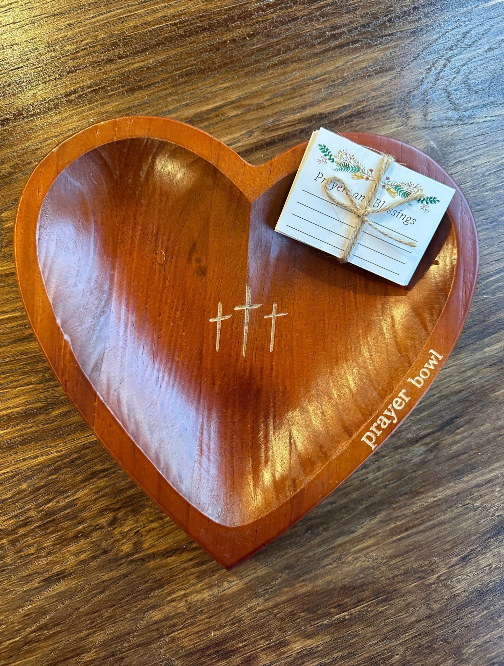 Wooden Heart Shaped Prayer Bowl with Prayer Cards