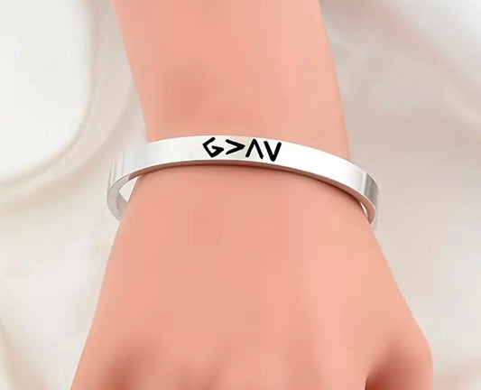 Stainless Steel “God Is Greater” Adjustable Cuff Bracelet