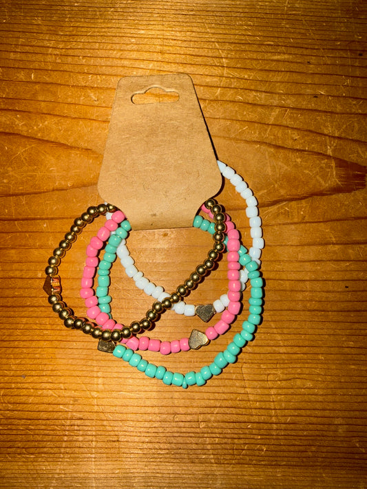 Petite Beaded Heart Accent Bracelet Set