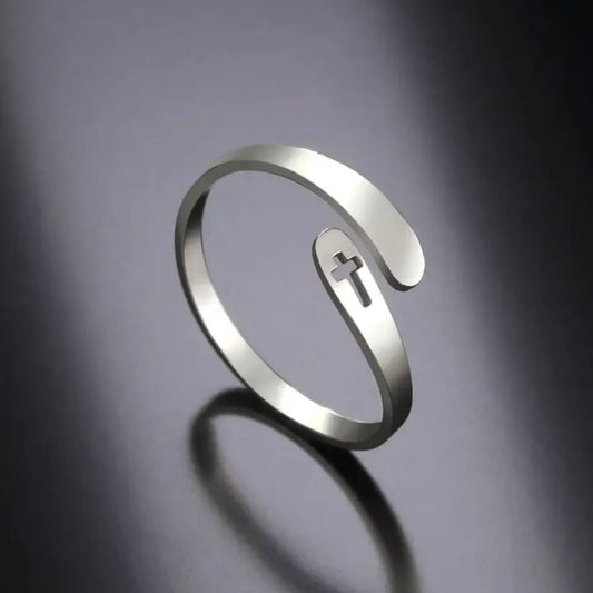 Elegant Simple Sterling Silver Black Enamel Cross Ring