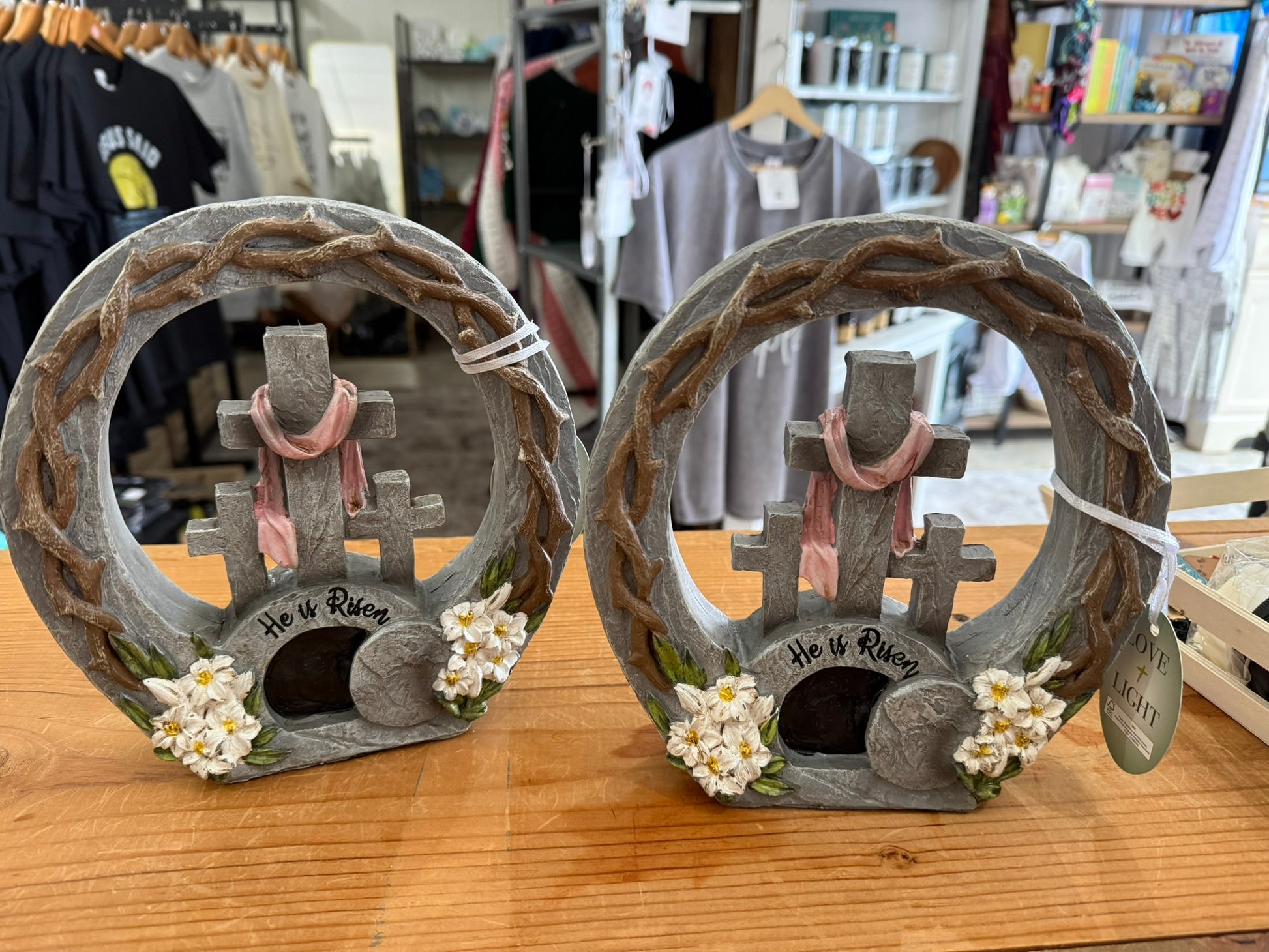 Celebrate the hope of Easter with this beautifully crafted He Is Risen Resurrection Decor, a meaningful piece that brings the story of the empty tomb and the risen Savior to life. Designed with rich detail and a reverent, handcrafted feel, this tabletop accent makes a powerful statement of faith for your home, church, or seasonal display.